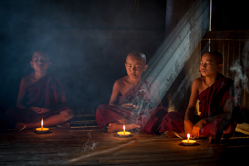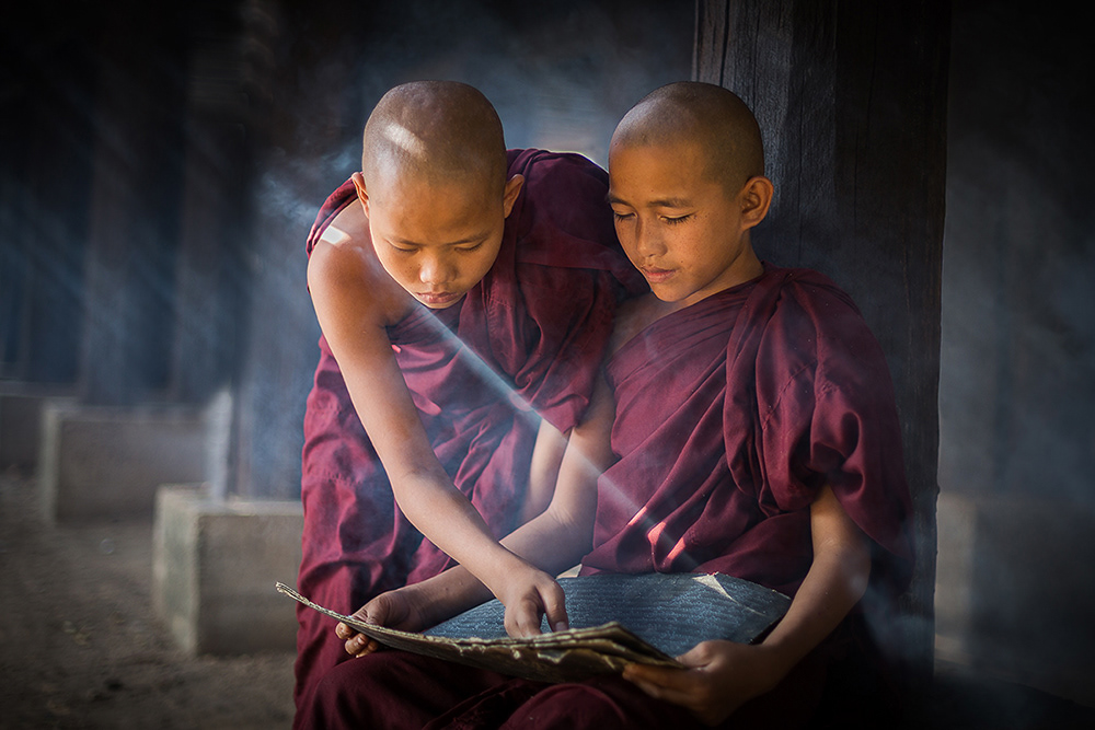 Novices in an old wooden monastry in Bagan. It was a great pleasure to me to go along with there study and meditation.
